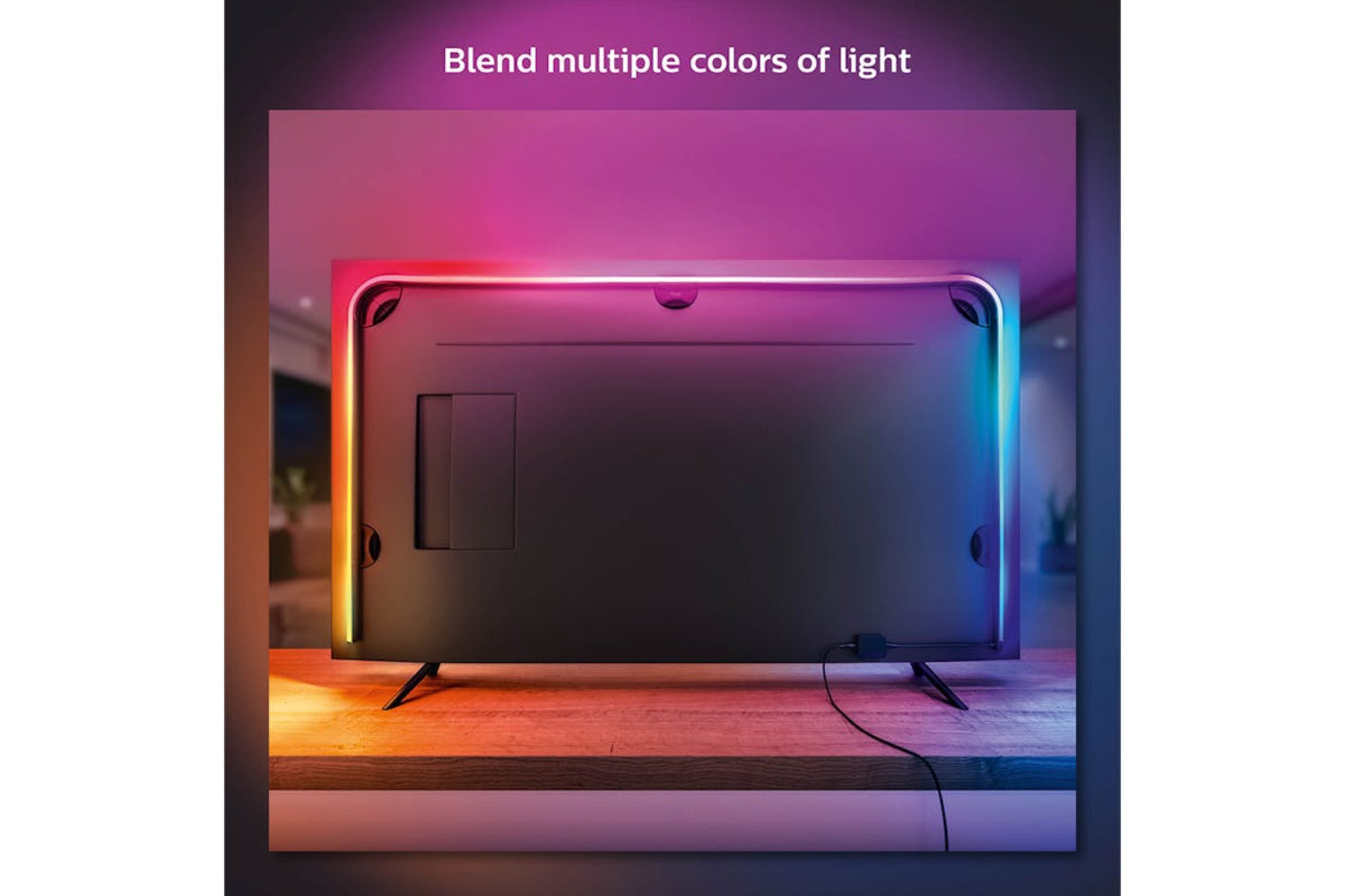 The Play gradient lightstrip is the perfect companion to the Hue sync box, which gives you lights that dance, flash, dim and brighten in sync with the content on your TV screen.