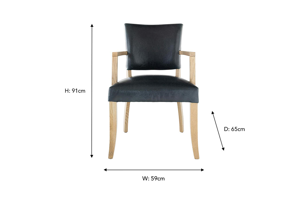 The appeal of this dining chair is built upon solid oak legs that run up to its comfortable back. The seat and back are both finished in leather which is also studded for added aesthetic value. In short, this dining chair has everything you need to add a touch of style to your home.