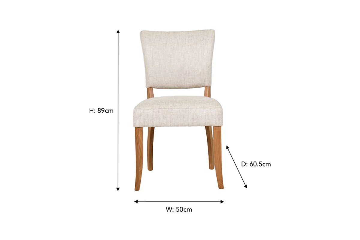 With so many eye-catching features, the Pryce chair is everything you need and more in a dining chair. The chair is built upon a solid wooden frame boasting a stylish curved leg design. Upholstered in a soft padded fabric in a natural colour, it is incredibly comfortable and easily integrates with both contemporary and classic décor. Its finish includes a piping round backrest for added comfort.