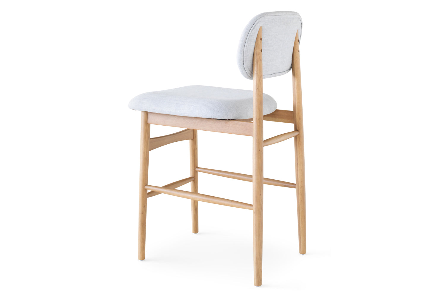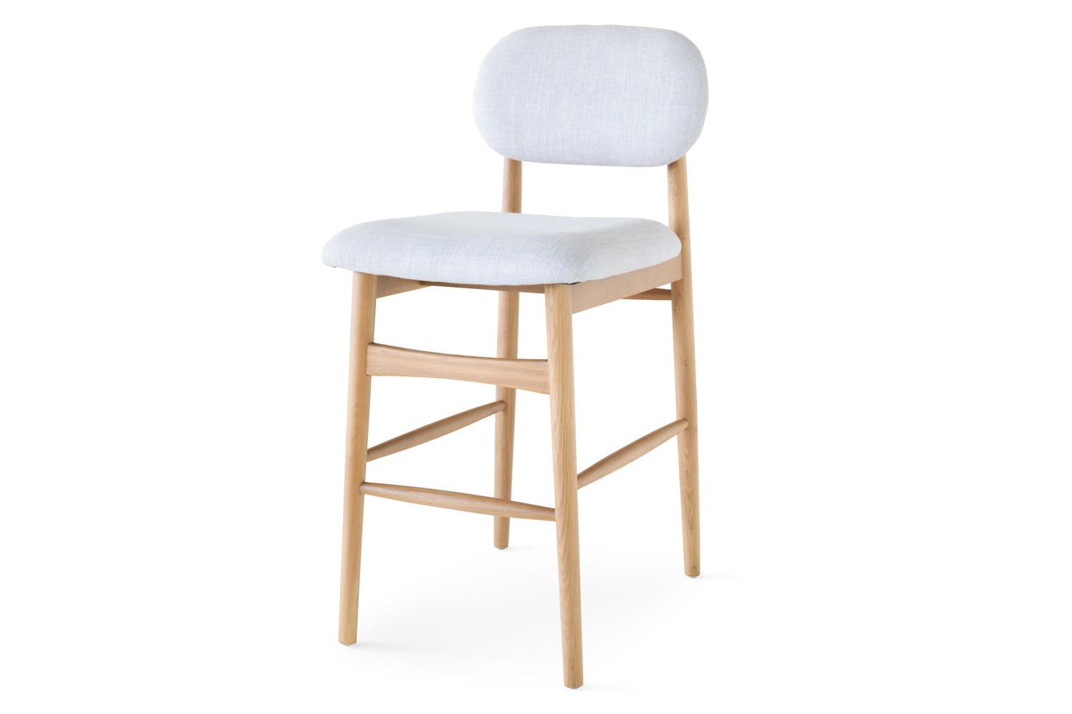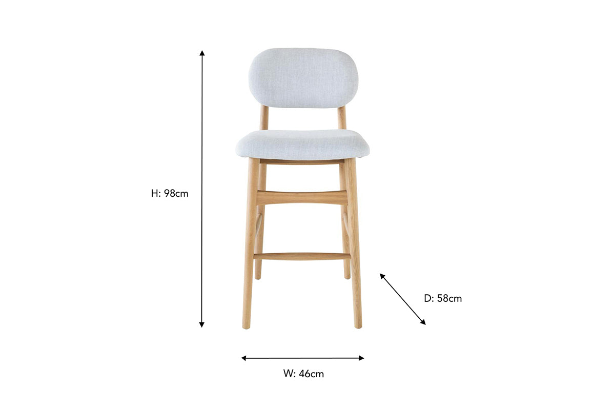 Establish an inviting and calm atmosphere in your dining space with the Rayne bar stool. The exposed natural wooden grain of this solid oak chair radiates a cosy feel while ensuring this will be a mainstay in your home for years to come. The seat and backing include padded cushioning upholstered in a soft fabric that add an extra layer of comfort while dining. It’s complete with a natural finish.