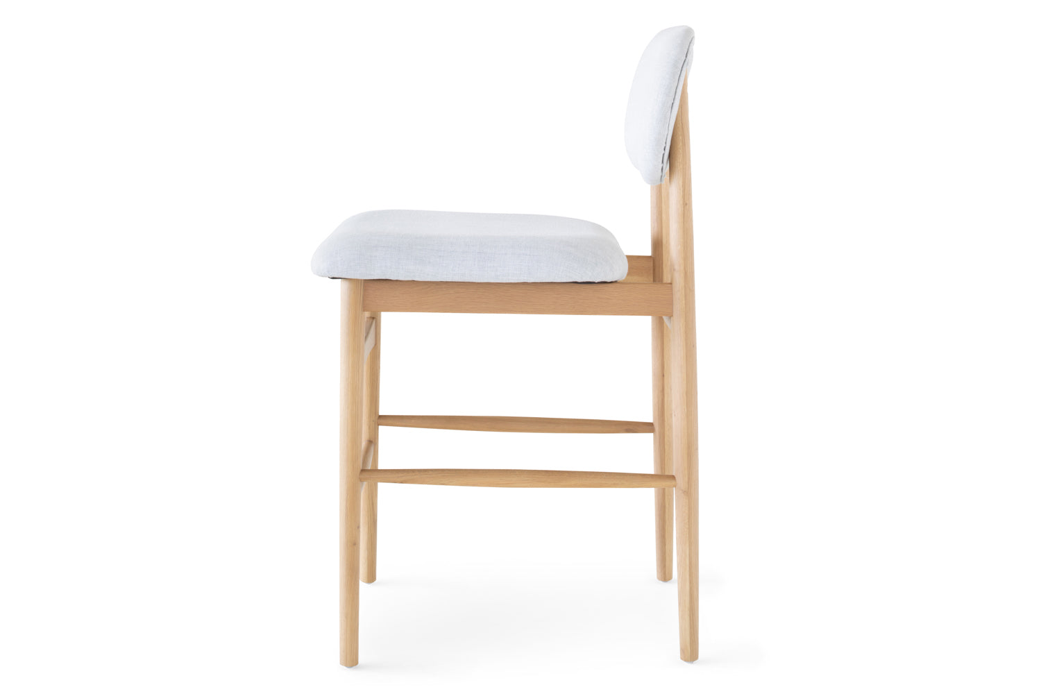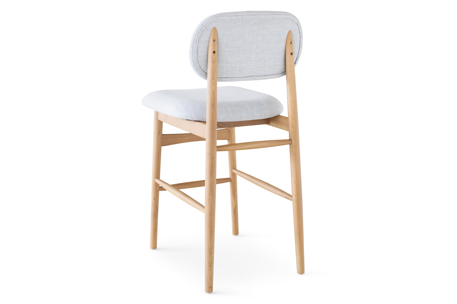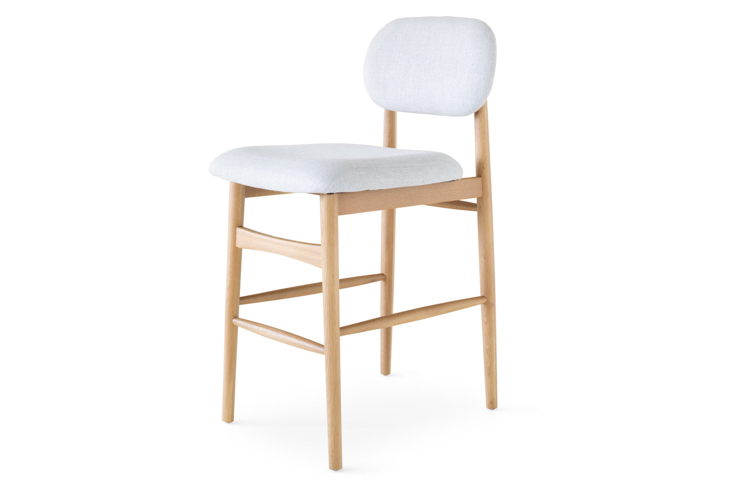 Establish an inviting and calm atmosphere in your dining space with the Rayne bar stool. The exposed natural wooden grain of this solid oak chair radiates a cosy feel while ensuring this will be a mainstay in your home for years to come. The seat and backing include padded cushioning upholstered in a soft fabric that add an extra layer of comfort while dining. It’s complete with a natural finish.