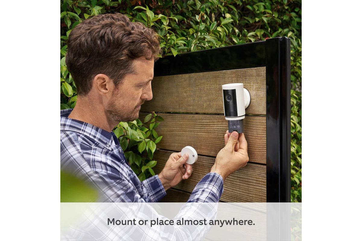 Whether you’re looking at distant objects or capturing a wide-angle look of your garden, Outdoor Camera Plus harnesses the power of Ring vision, combining hardware, software, and behind-the-scenes fine-tuning to deliver Ring's best image quality yet.[1] With easy DIY installation and a weather-resistant design, you can put the Outdoor Camera Plus almost anywhere outside your home.