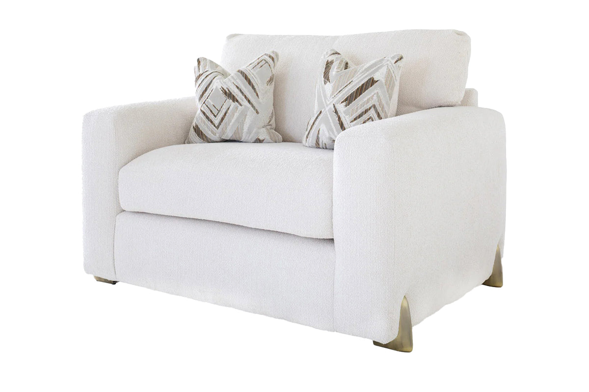 With its enticingly soft cushioning, feather filled pillow backs, and smart tailoring, the Romeo Loveseat has everything you’re looking for! The ultimate in luxury seating, this sofa offers generous proportions of seating, deep and comfy cushions, and will beg you to lie back and relax that extra bit more. This sofa evokes a feeling of warmth and comfort, thanks to its traditional shape and style that is complemented by the contemporary metal and wood feet. Ready for action, this sofa comes with feather filled scatter cushions that will blend with any existing décor.