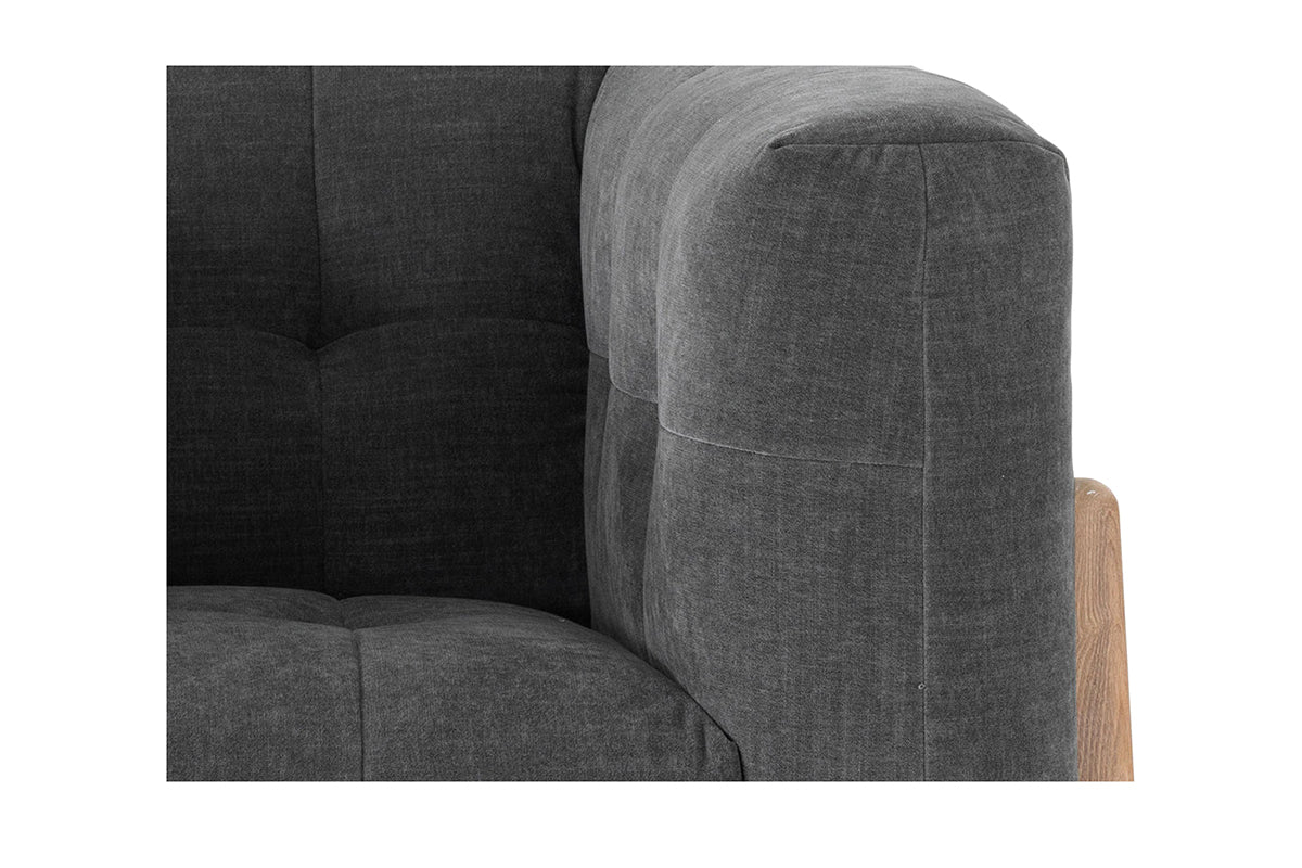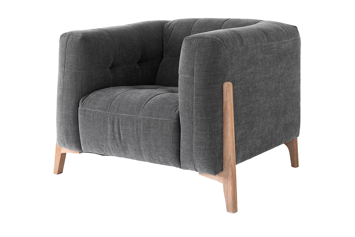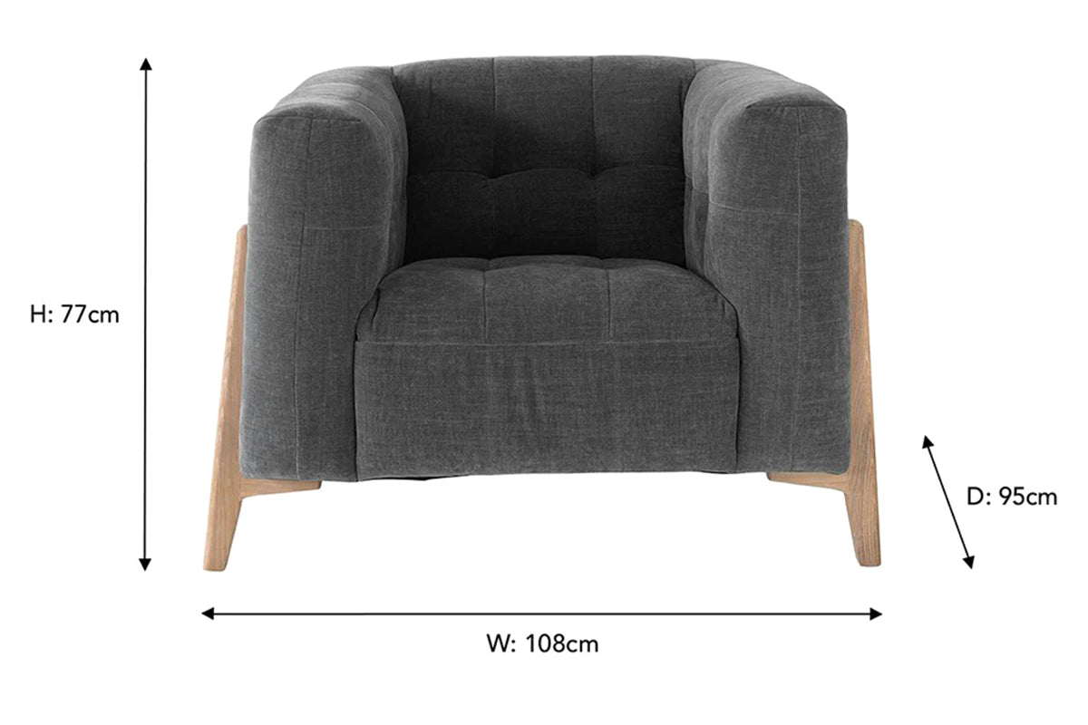 From top to bottom the Rosie armchair features a number of striking features that are sure to catch your eye. Starting with the soft fabric upholstery in grey that radiates a warm and inviting energy and the highly durable wooden frame that’s sure to stand the test of time. It’s complete with the wooden legs that go slightly up the arm that give this look a modern twist. The deep button detailing combines contemporary style with timeless elegance.