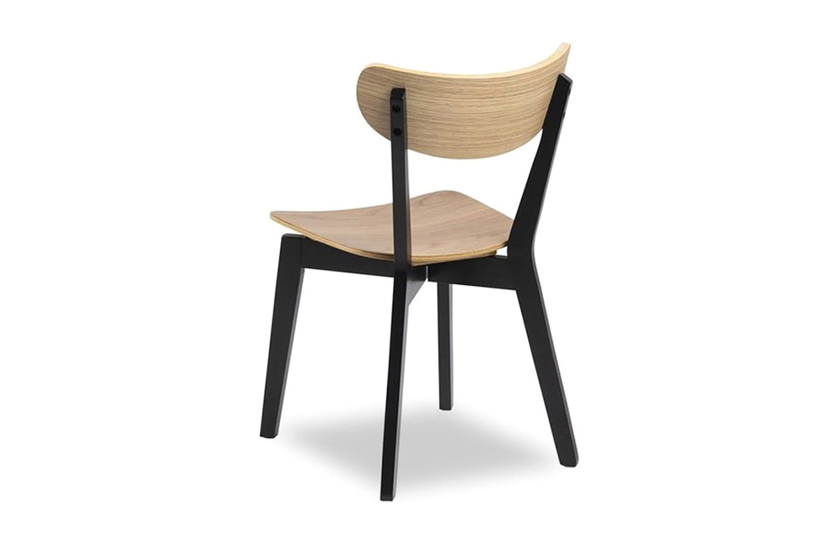 This dining chair has cool modern design in spades. The curved back and seat ensure comfort, while the lacquered oak effect material means it’s going to look good in any home.
