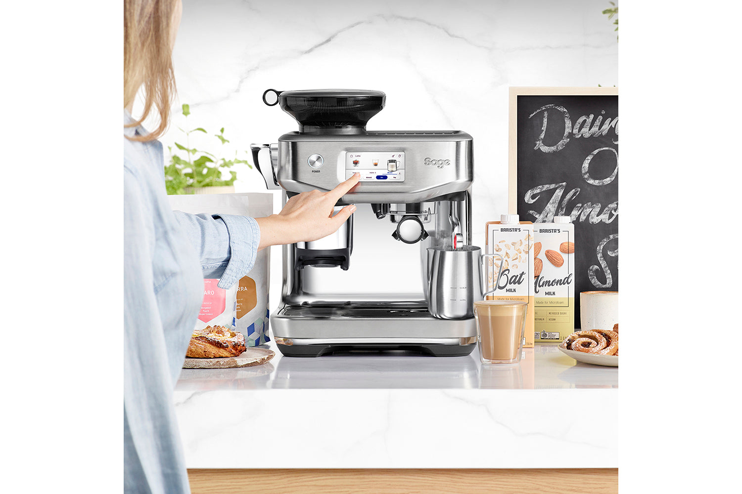Sage espresso machines incorporate the 4 keys formula used by professional café machines. Designed to use the right dose of freshly ground beans, ensure precise temperature control, optimal water pressure and create true microfoam milk essential for latte art. You’re only a touch away.