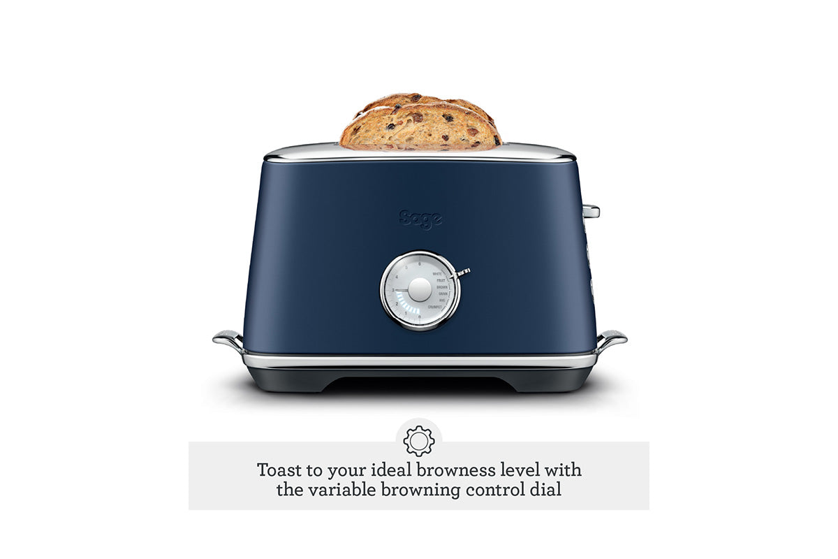 The Toast Select Luxe with 6 bread settings - White, Brown, Grain, Fruit, Rye and Crumpet adjusts the toasting time for each type of bread.