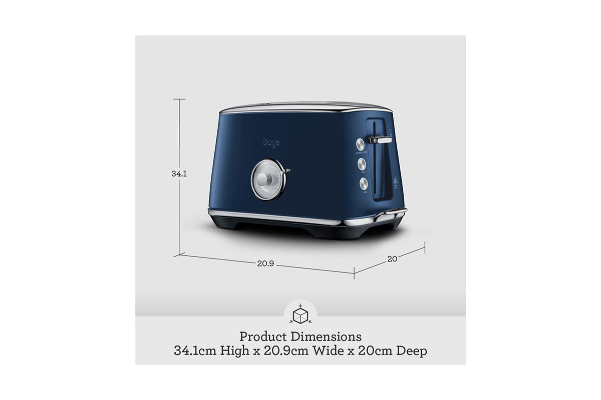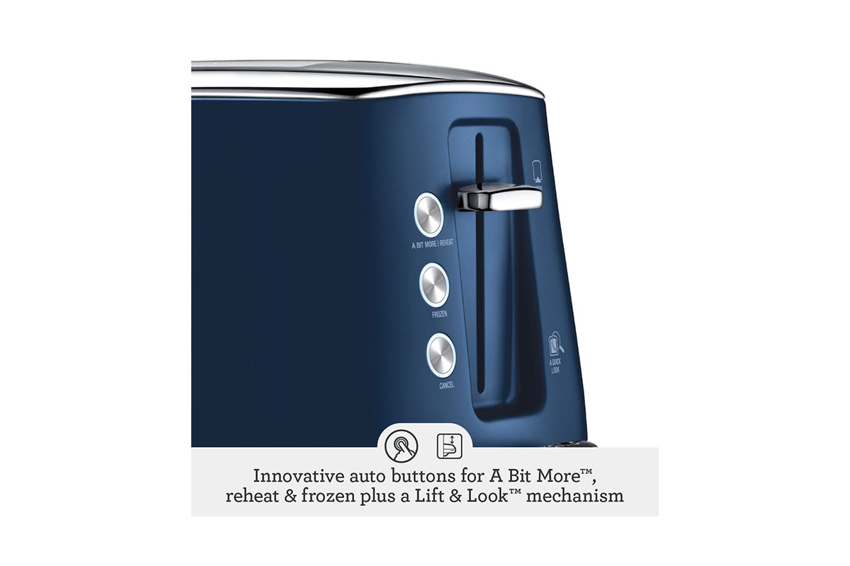 The Toast Select Luxe adjusts the toasting time for each type of bread. 'A Quick Look' to check if it's done. Press 'A Bit More' to give it just that… a little bit more. Follow toasting progress with the LED countdown indicator. Crafted with brushed stainless steel in premium metallic finishes and chrome accents.
