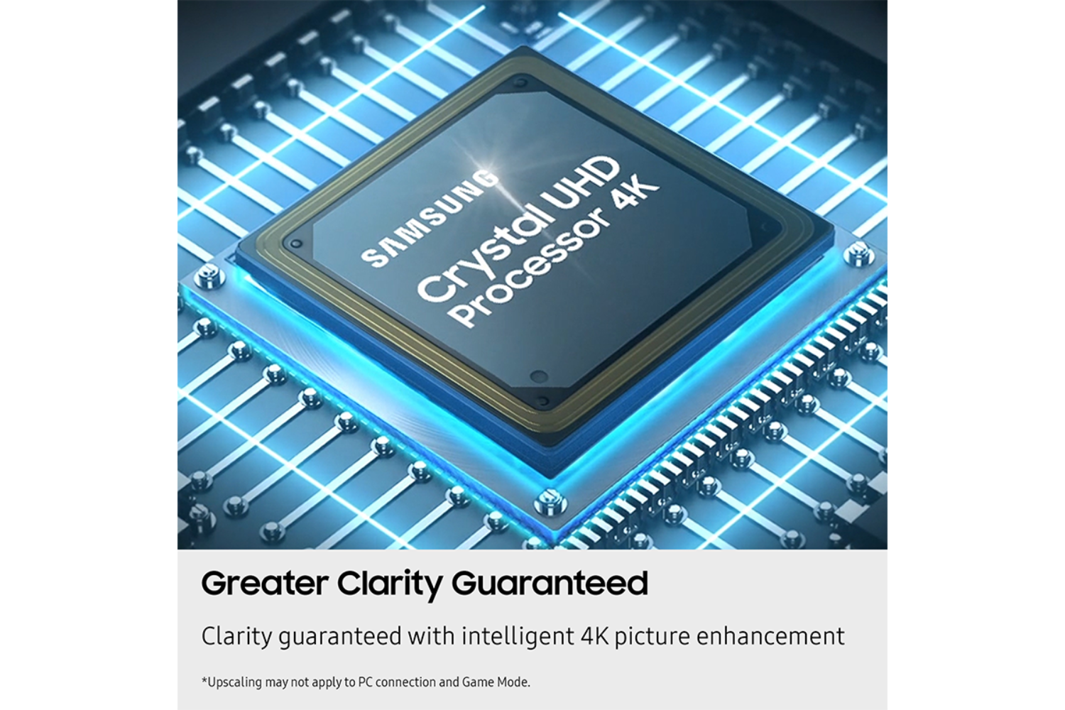 Experience enhanced 4K picture and crystal-clear sound with Samsung Crystal Processor. Enjoy your favourite movies, shows and sports with quality visuals and sound.[1]