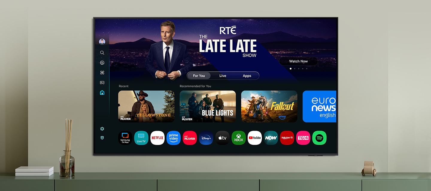 Spend less time searching and more time watching. With Netflix, Disney+, RTE Player, Xbox and more, get instant access to the latest shows and movies on the best streaming apps. Plus access to 1,000s of extra TV Shows and Movies on Samsung TV Plus - all for free.[10]