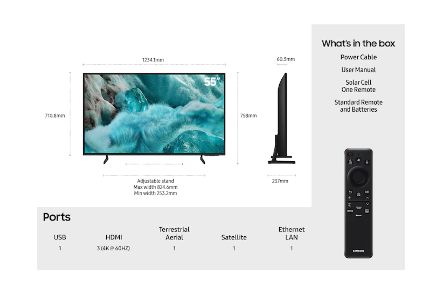 Control your TV with your favourite Voice Assistant - with Bixby and Alexa built-in to your TV. Ask them to change the volume, find that new series, bring up your holiday photos, or check on your connected devices in your smart home. The possibilities are endless - you just need to ask.[2]