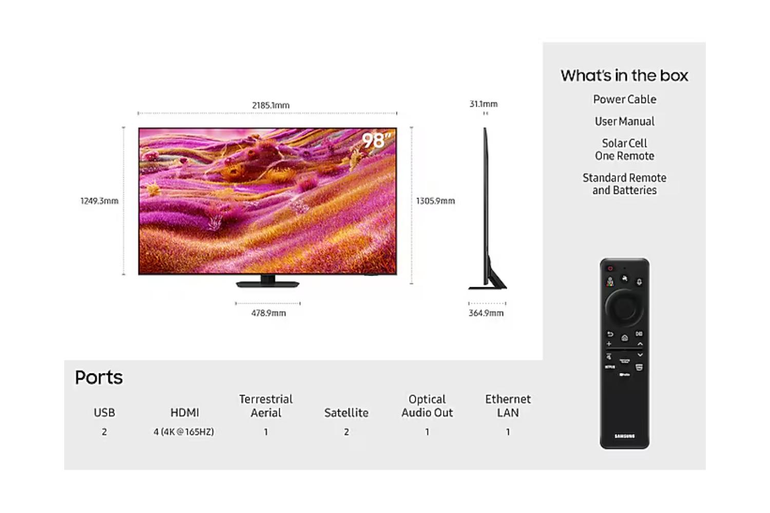 Experience Samsung most advanced Quantum Mini-LED Pro, powered by Quantum Matrix Technology Pro for ultra-precise light control—delivering true blacks, vivid colours, and incredible brightness for a picture that’s rich in every detail.[7]