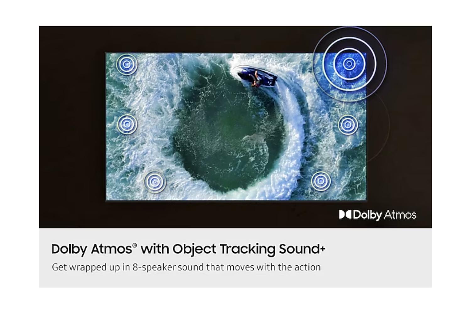 Imagine those big movie moments, sounding bigger. Dolby Atmos technology delivers a sound experience that you can feel around you. You'll hear 3D surround sound that follows the movement on screen using our incredible virtual top channel audio.