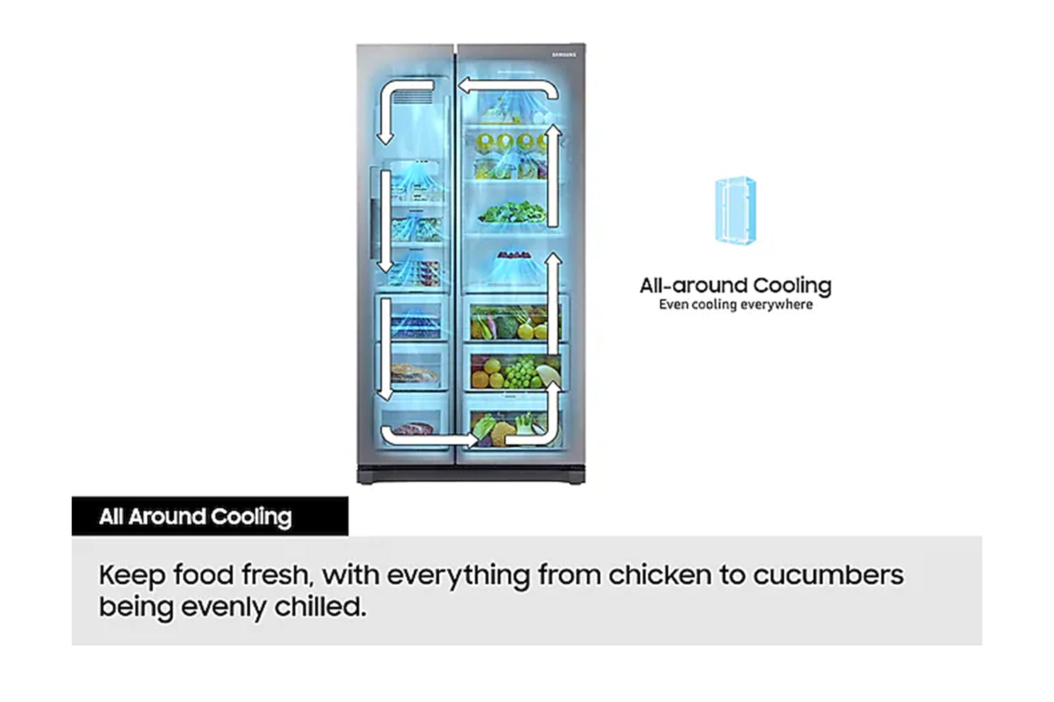Never lose your cool with all-around cooling. It does what it says on the tin - moving cool air around the fridge to keep food fresh, with a constant temperature. So everything from chicken to cucumbers will be evenly chilled. Every item stays ideally cooled no matter where it's stored in the fridge.
