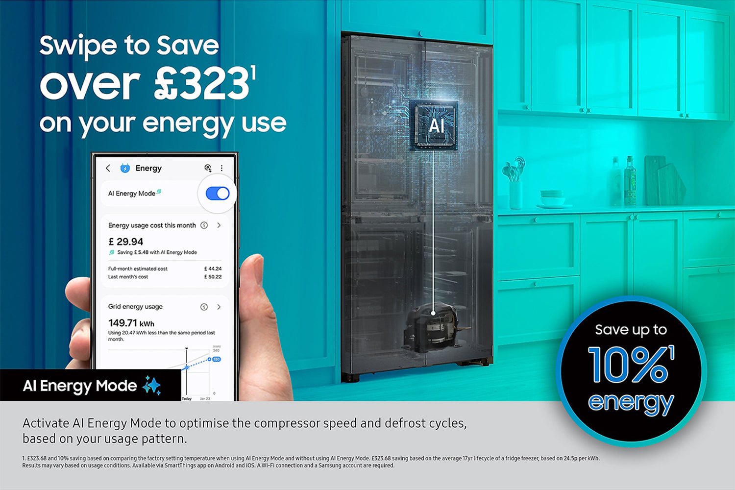 ** To utilise the Al function of the Al inverter compressor, the Al Energy mode needs to be activated on the SmartThings App, which also requires a Wi-Fi connection and a Samsung account