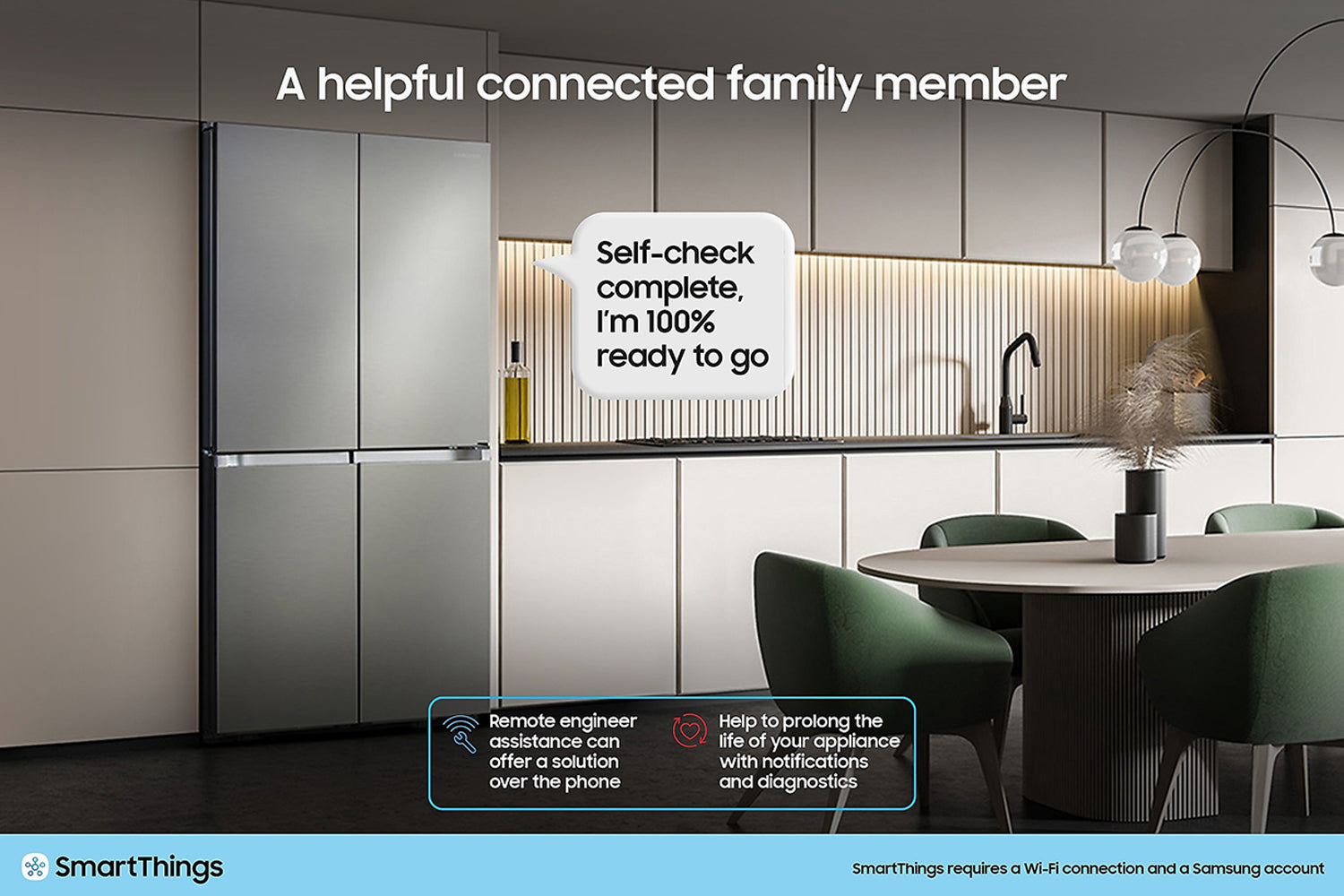 ** Available via SmartThings app on Android and iOS. A Wi-Fi connection and a Samsung account are required.