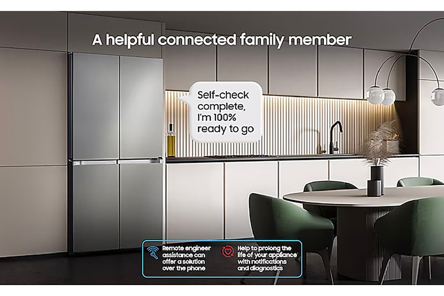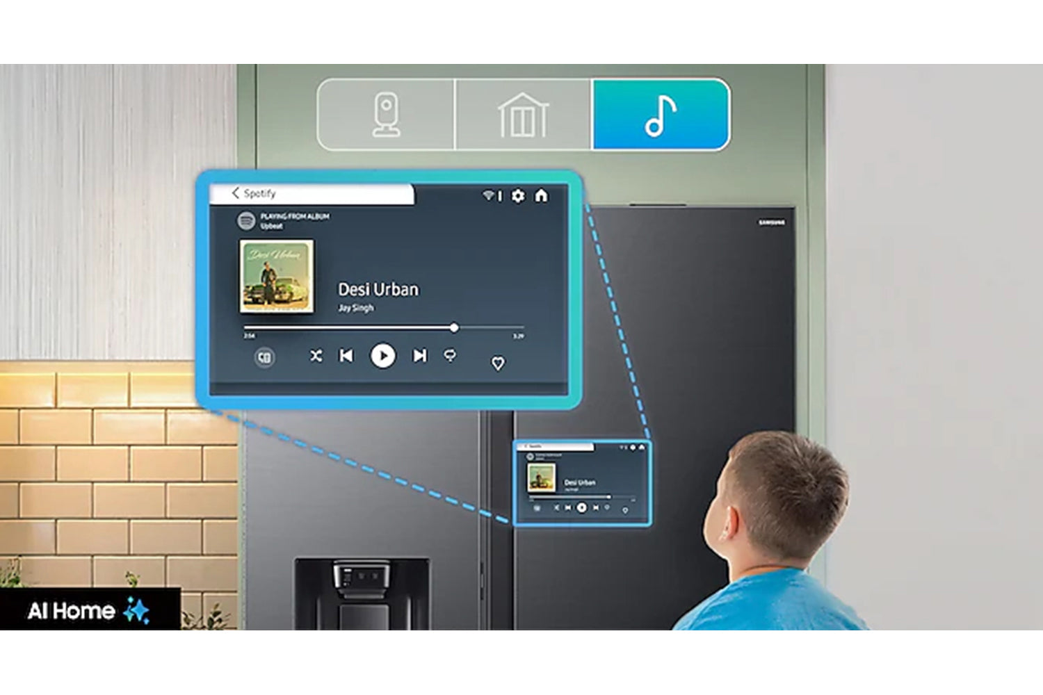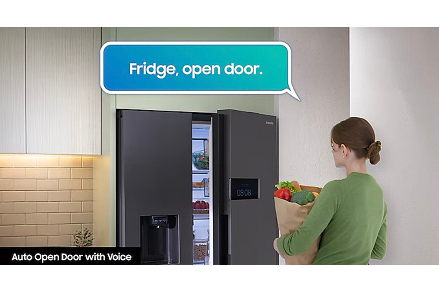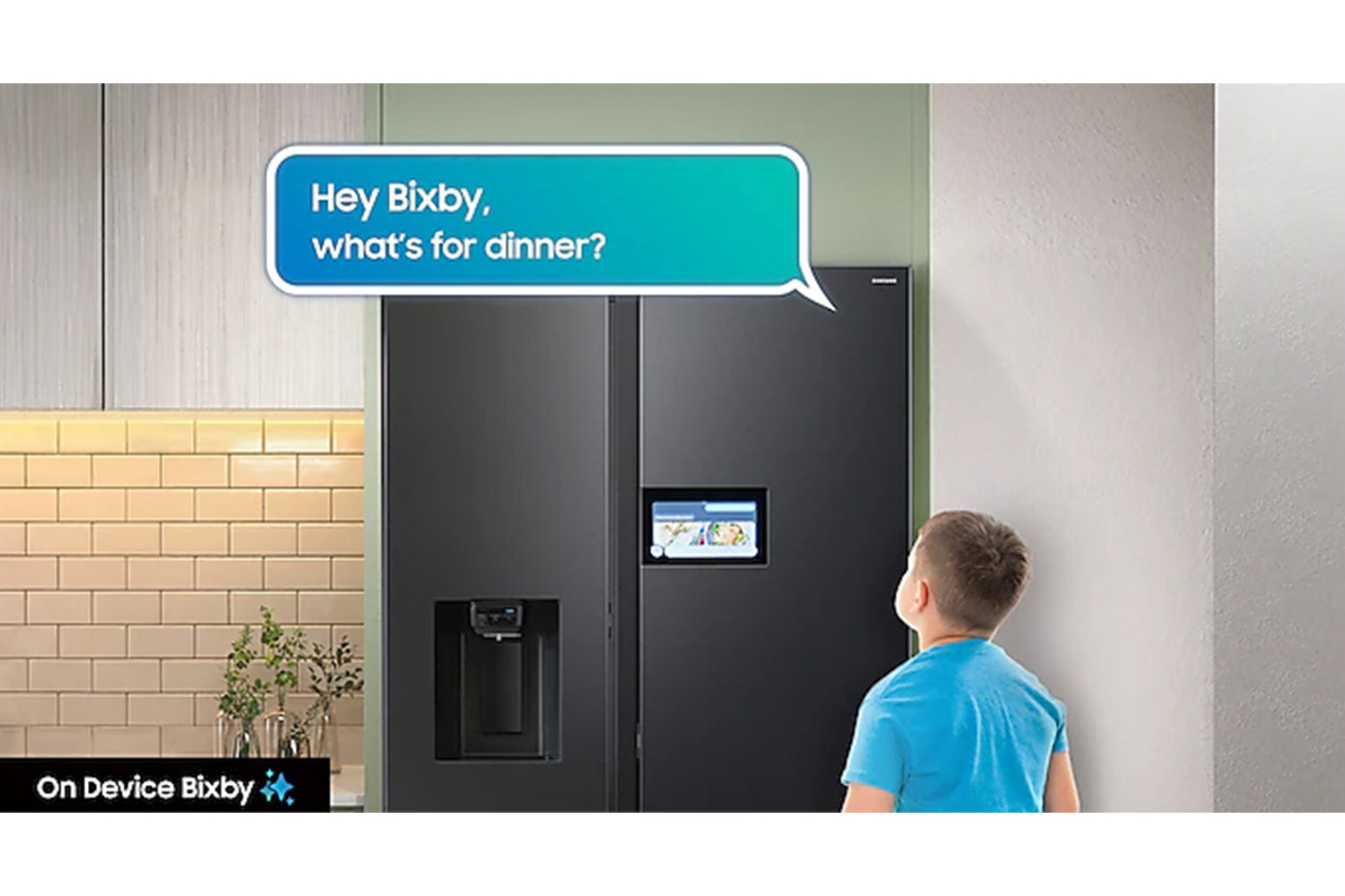 Get smart in your kitchen. The AI Home* with a 9" LCD Touchscreen Display is an intuitive control centre. It lets you manage and control your smart home devices** and access multiple apps. It activates with your touch and provides personalised information, like weather notifications, appointment reminders and recipe suggestions based on the food you take out of the fridge. And built-in voice recognition means you can simply speak commands and ask for information using Bixby.[1]