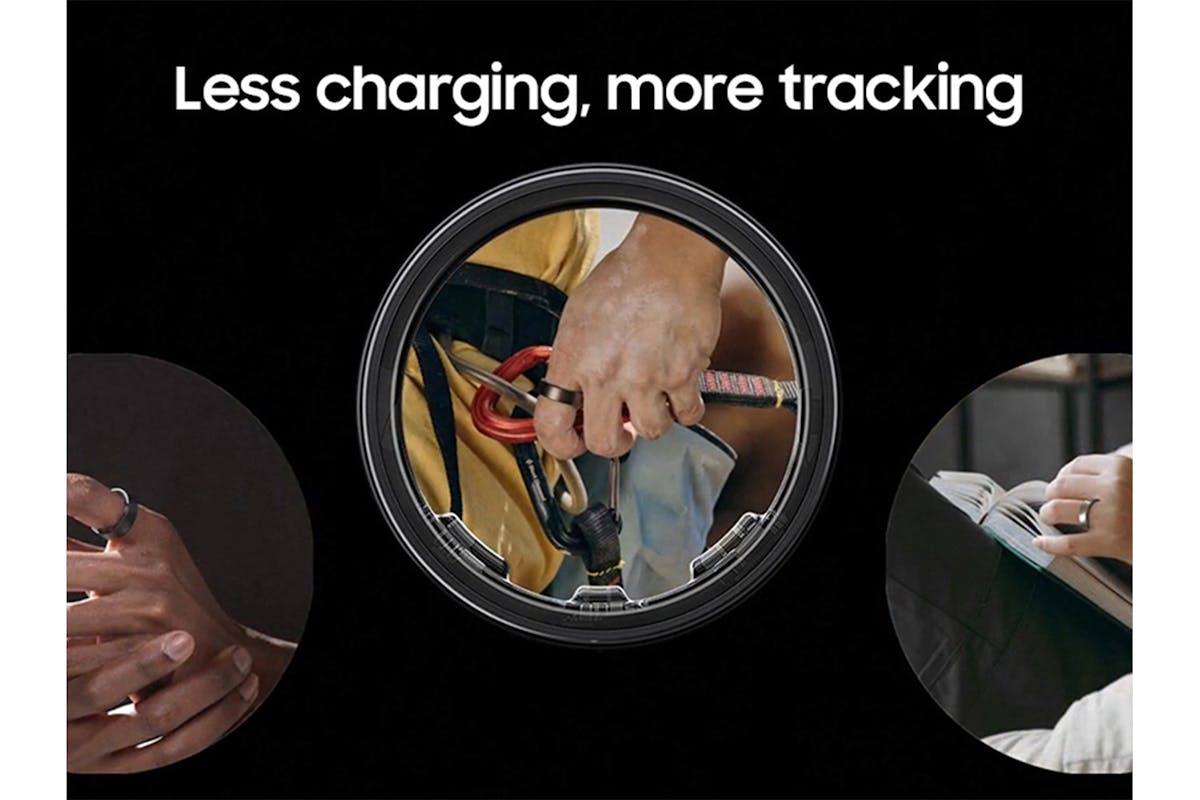 Battery life is based on results from internal lab tests for typical usage pattern scenarios conducted by Samsung. Tested with results from a pre-release version of the device using under scenario of Sleep Tracking for 6 hours, Work Auto Detection for 1 hour and 30 minutes and with several specific events (20 times of reconnection after disconnection, 3 times of Samsung Health app setting change, 0.5 times of Find My Ring execution, 3 minutes of gesture execution) assuming 24 hours of use per day. Actual battery life may vary depending on different usage patterns, device model, or the battery manufacturer.