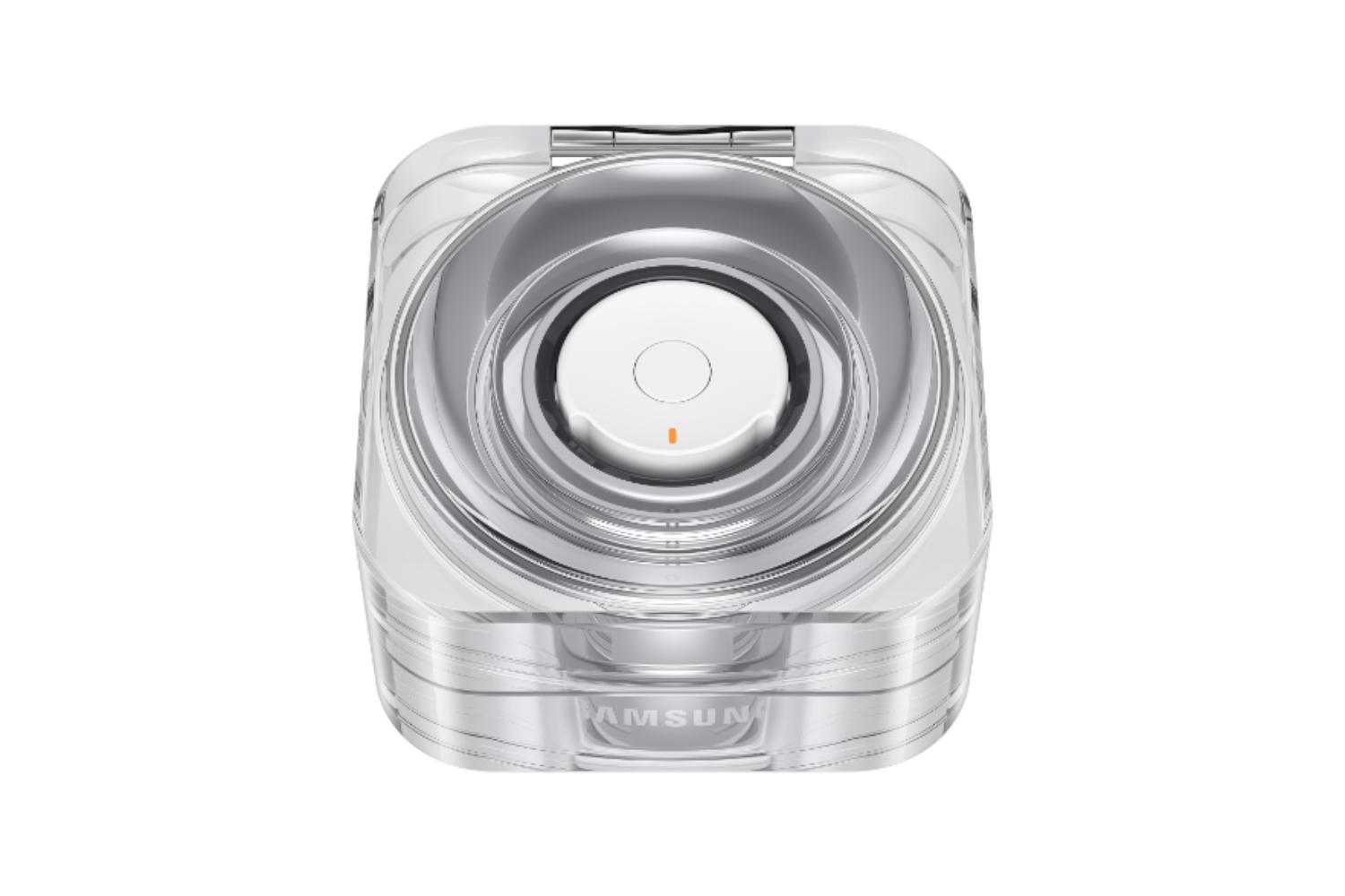 Even while charging in its crystal-clear Charging Case, the Galaxy Ring is a sight to behold. The delicate glow of the light around the Multi-purpose button indicates the battery charging level. The Charging Case can be charged wirelessly too, so simply place your Galaxy Ring securely in its case when you're on the go, and place it on a wireless charging pad for easy charging. [14][15][16]
