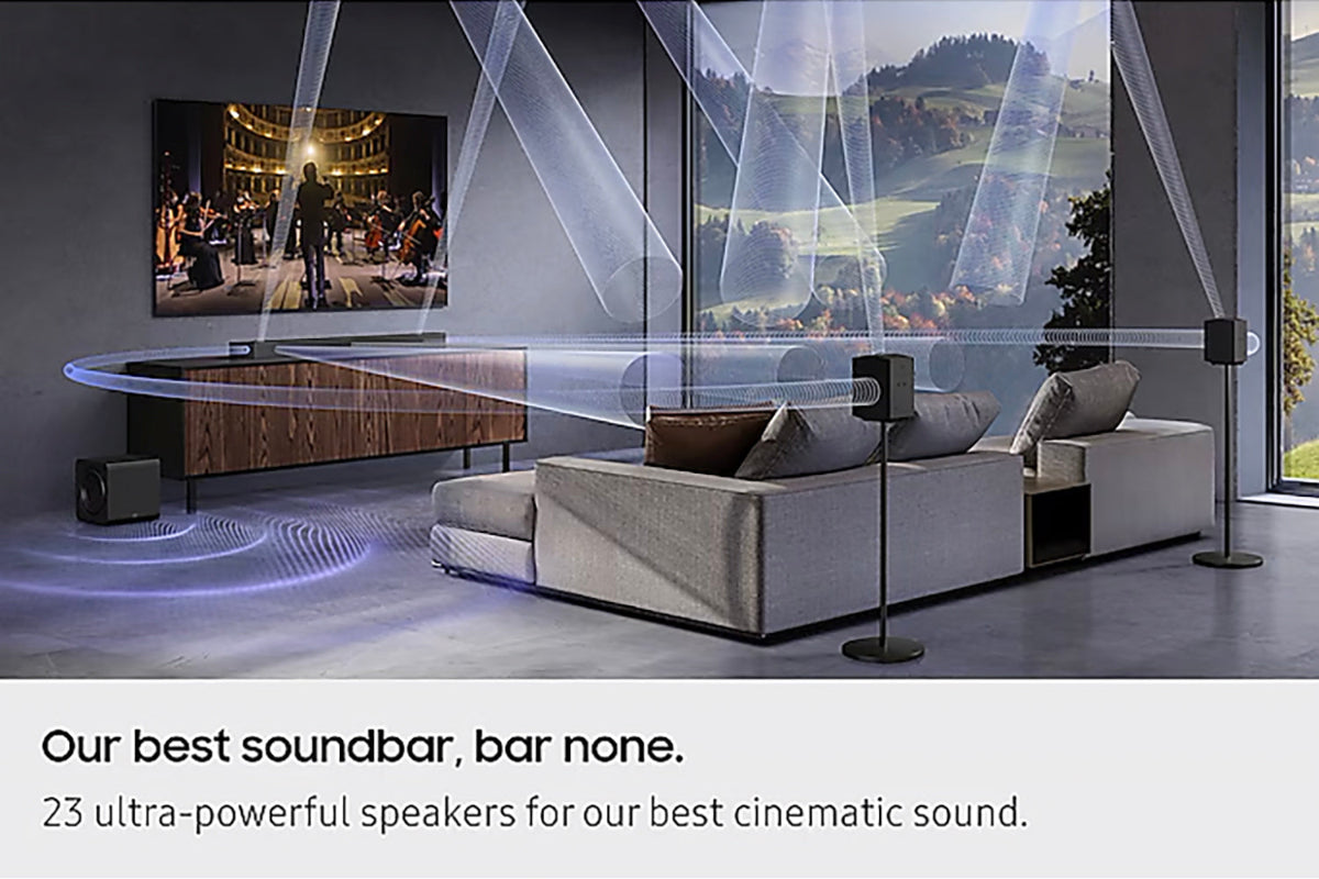 Experience immersive, crystal-clear surround sound. 17 speakers—expertly tuned by the award-winning Samsung Audio Lab—deliver rich, powerful audio that brings every scene to life. With 4 up-firing speakers you’ll feel like you’re right in the action, no matter what you’re watching.