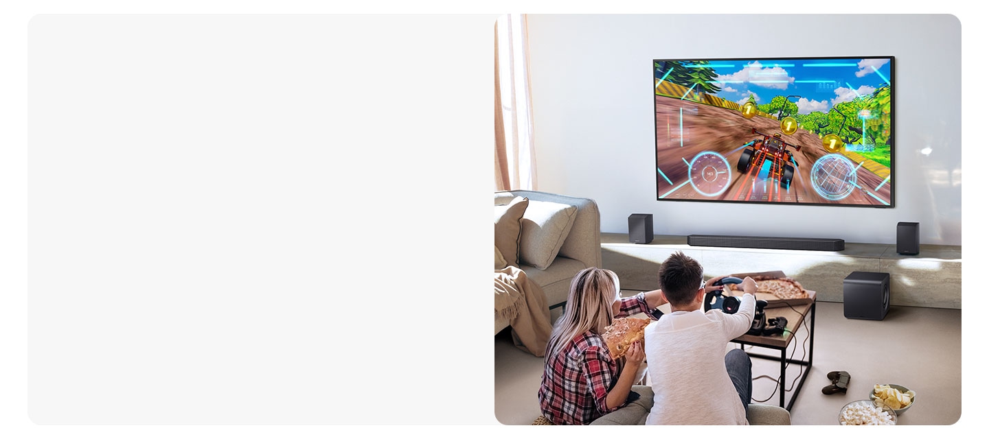 Experience the power of intelligent adaptive sound that upscales and optimises the action you're watching. Enjoy big games with enhanced crowd and commentary levels, hear the depth of every blockbusting blast and never miss a word of crisp dialogue, even in whispered scenes.