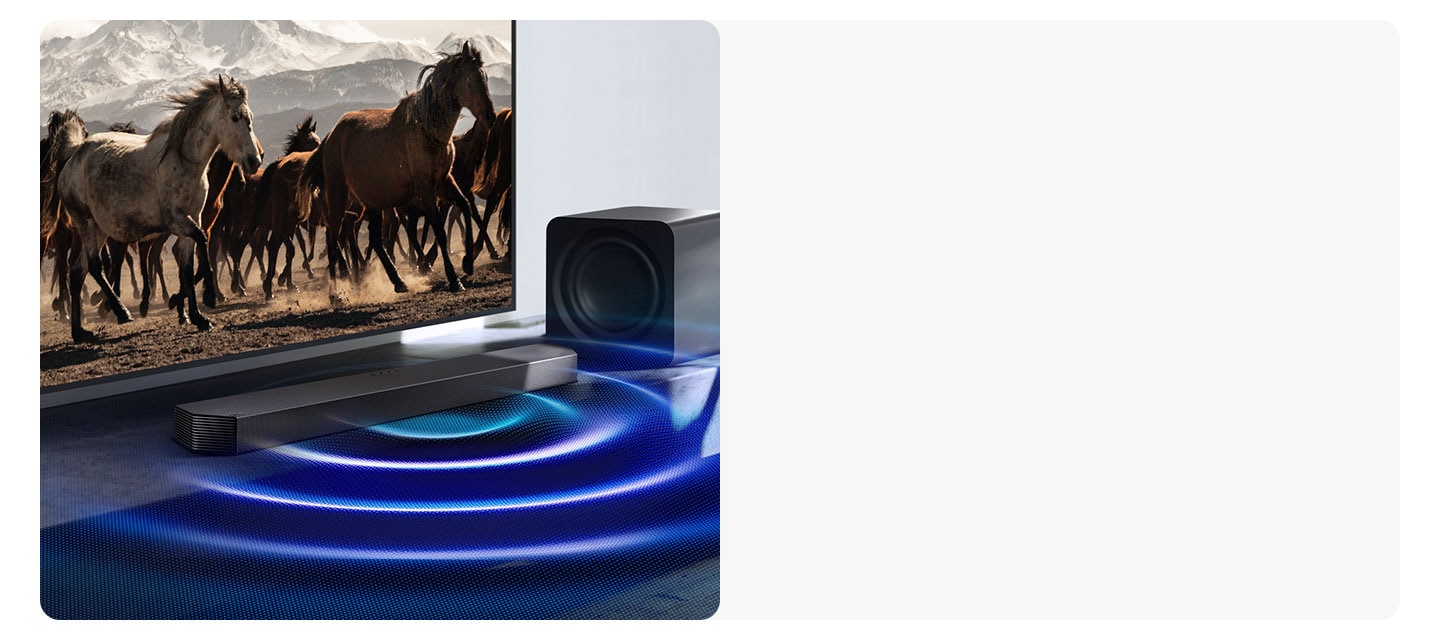 No space for a subwoofer? No problem! The ultimate movie experience with deep bass is delivered all from the soundbar. Enjoy a sleek, effortless setup with cinematic sound and deep, powerful bass to enhance your living room experience.