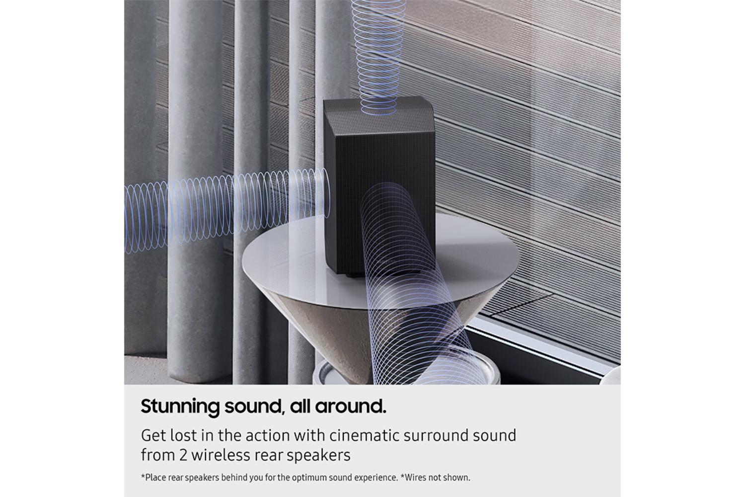 Sit back and enjoy absorbing cinematic surround sound with two wireless rear speakers to amplify your home entertainment. Be immersed in bi-directional surround sound and feel like you are part of the action.