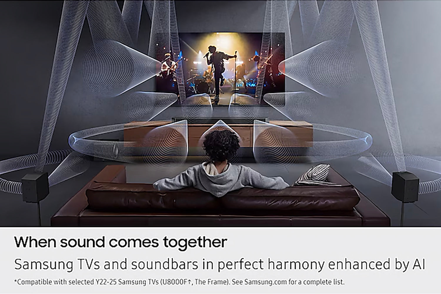 Boost your viewing experience with integrated sound from your TV and soundbar, effortlessly synced with AI. Relax and let Q-Symphony handle the rest. Elevate your audio, perfected by Samsung.[4]