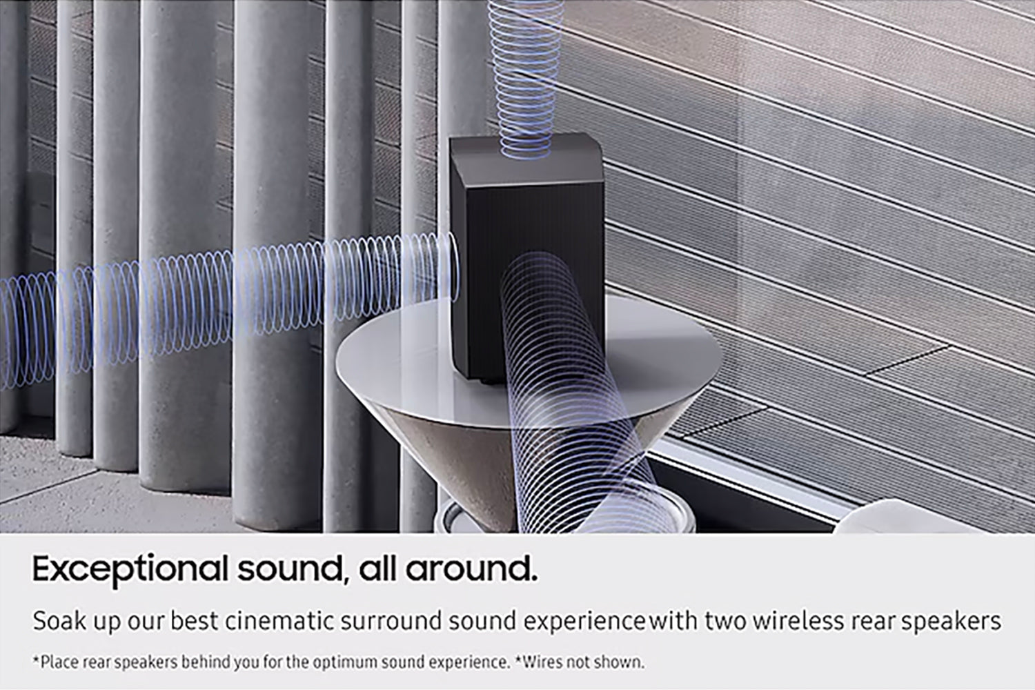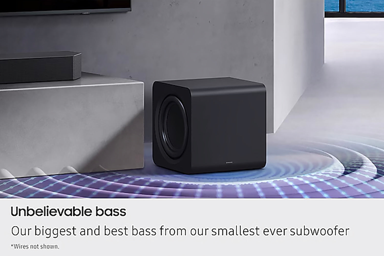 AI-powered sound technology enhances your bass while minimising distortion, delivered by Samsung most compact subwoofer. Action scenes hit harder, explosions feel more immersive and every beat is richer.