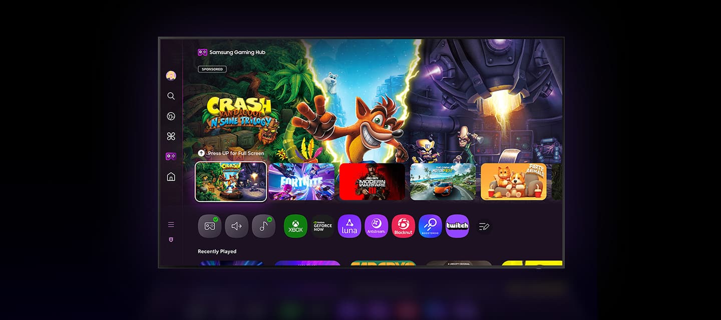 Samsung Gaming Hub brings together the biggest console and streaming games from Xbox and other industry-leading partners, all in on one place.* With no downloads, storage limits or console required, just turn on your TV and play.[9]
