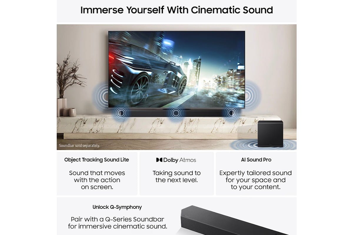 - Additional Features Samsung Q-Symphony, Audio Pre-selection Descriptor