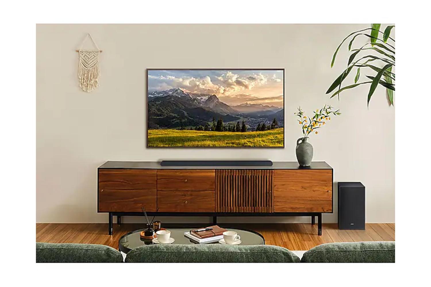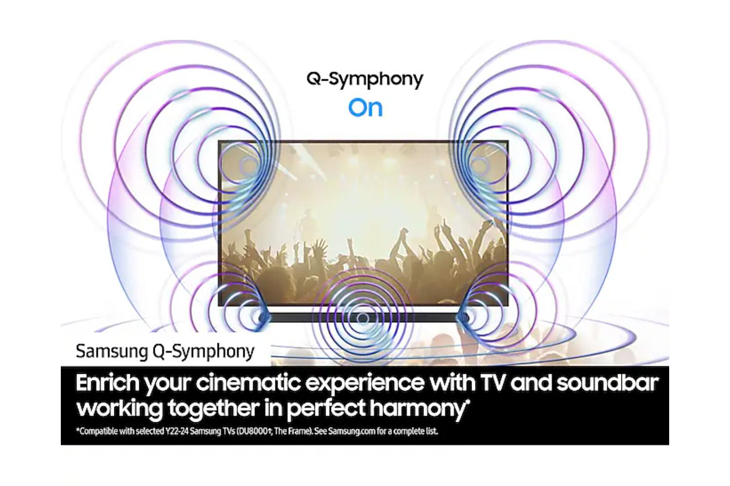 Enhance your viewing experience with amazing sound from both your TV and soundbar, working in perfect harmony, without a complicated set up. Just kick back, and let Q-Symphony take care of it all. Elevate your sound experience, perfected by Samsung.