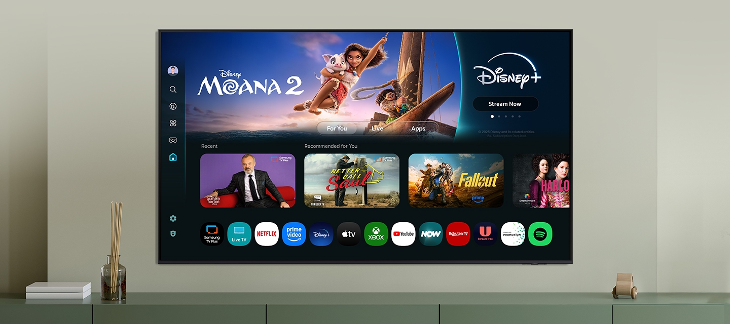 Spend less time searching and more time watching. With Netflix, Disney+, YouTube, Xbox and more, get personalised recommendations and instant access to the latest shows and movies on the best streaming apps. Plus access to 1,000s of extra TV Shows and Movies on Samsung TV Plus - all for free.[11]