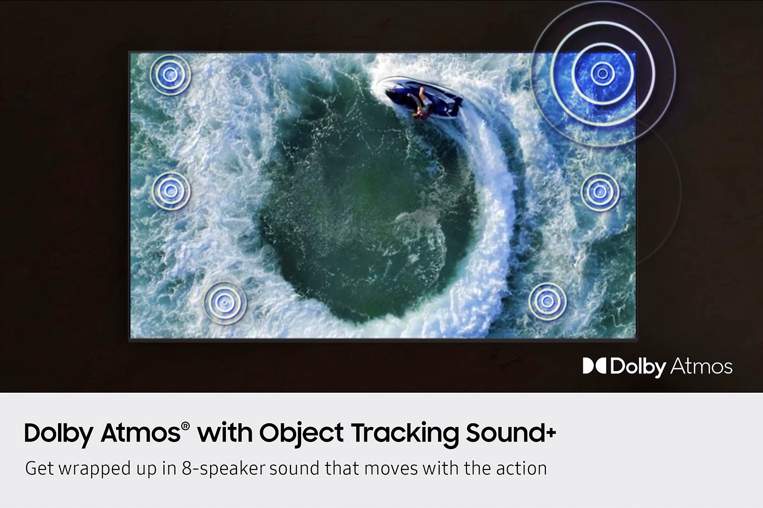 Immersive TV sound that follows the action on screen with 8-speaker sound that moves with the action. Hear the rise of the crowd as your sports team attacks, feel superheroes swoop into scenes, and get drawn into sound that peaks with every action you see.