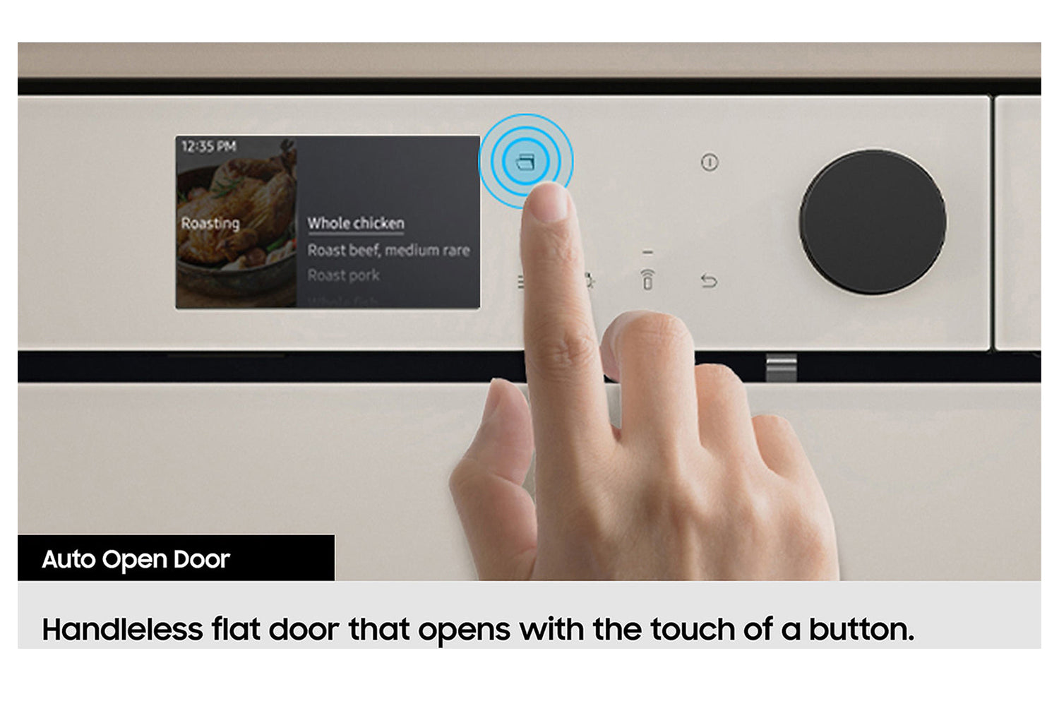Give your home a simple and seamless appearance. This touch opening oven features a handle-less, flat door design, so it perfectly matches your kitchen style. And with one touch of your fingertip on a button on the control panel, you can open the door* gently and effortlessly.
