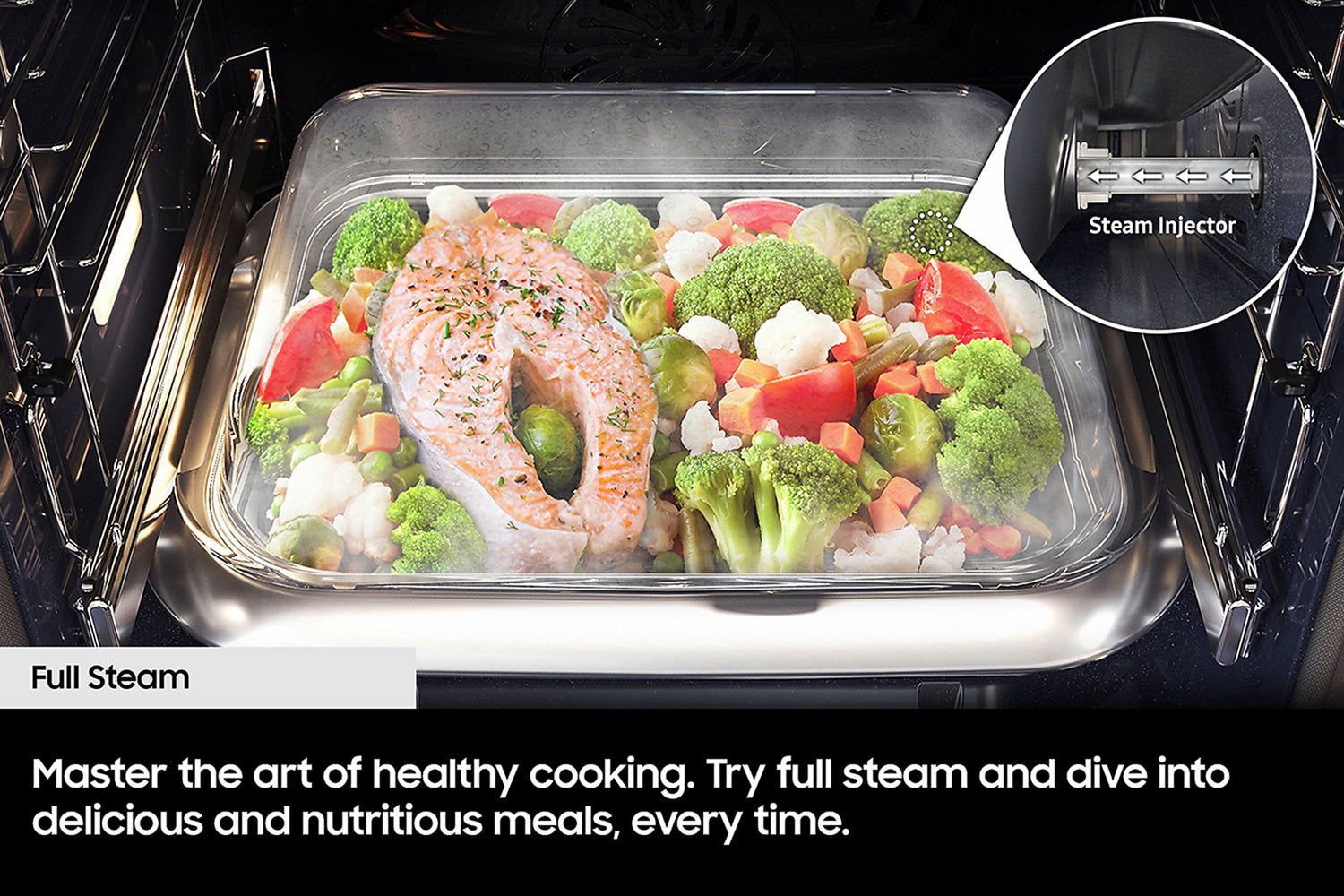 Get deliciously succulent and crispy food. Add Steam fills the oven with steam to ensure that your food retains more of its natural moisture. So it is always juicy and soft inside, but still deliciously crisp and brown outside. And you can easily adjust the amount of steam across 3 levels.