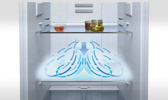 Uneven cooling in your fridge makes it hard to keep all your food items fresh. But those days are gone. The high-gloss backwall with multiairflow circulates air evenly for a constant temperature on all levels. Food you’ve placed inside recently cools quickly, and the system works hard to preserve your food’s freshness.