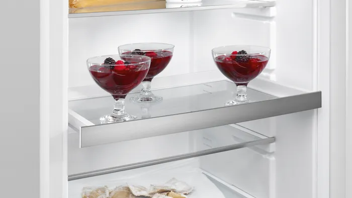 Every glass shelf is made from extra-strong, easy-to-clean safety glass. If something tips over, the spillage is contained and does not leak into the rest of the fridge compartment.