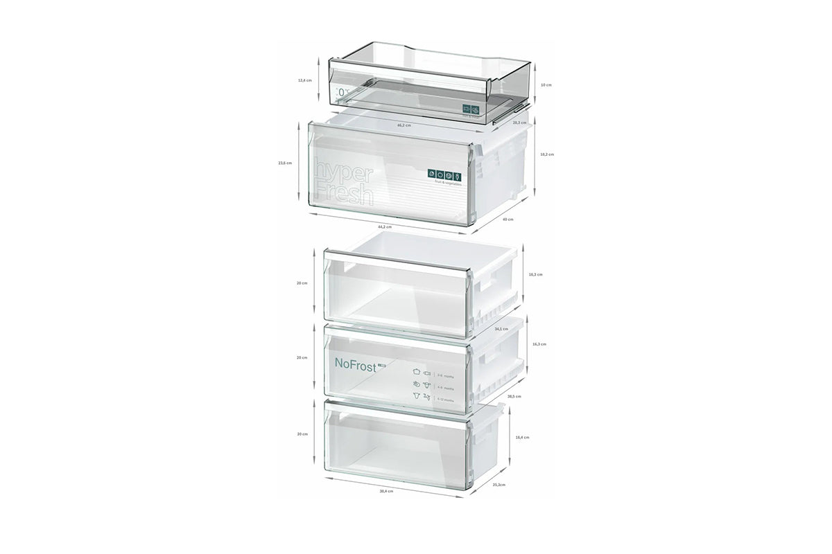 Get the space you need for all of your fruit and vegetables. And use the dedicated compartment for meat and fish, which has its own cold-air supply to keep food in top condition for longer. More space and ideal storage, in one system.