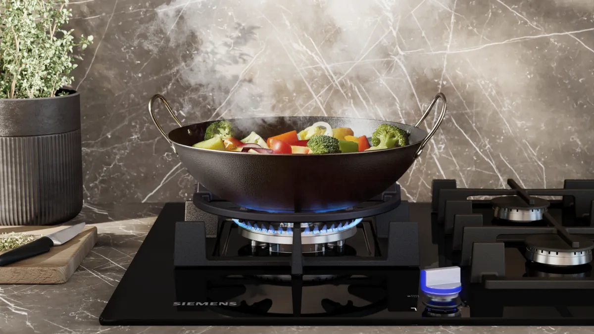 Now, you can fire up your passion for cooking with gas without compromising your commitment to eco-conscious living. With Siemens gas hobs, you can choose between using natural gas or sustainably produced biomethane gas to fuel your hob.