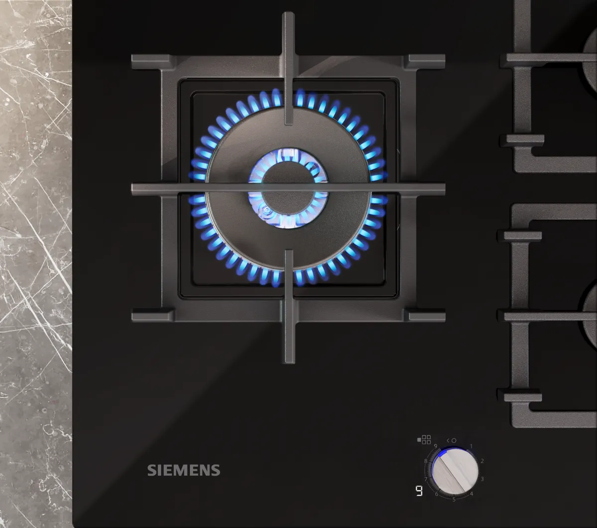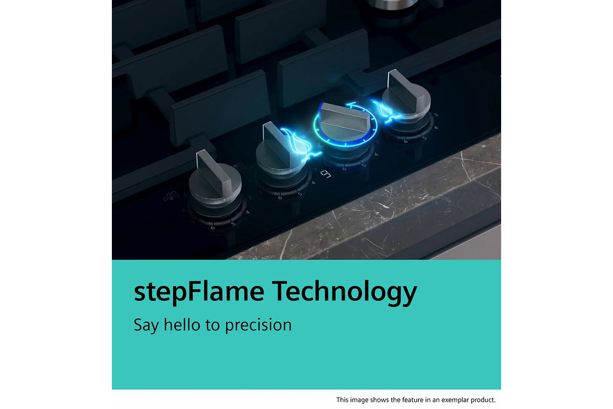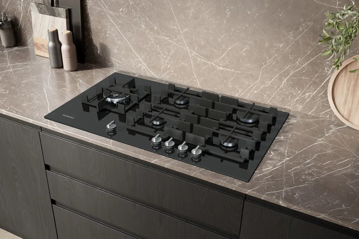 Siemens gas hob's black tempered glass surface is designed with your busy life in mind. It’s incredibly heat-resistant, standing up to the highest temperatures.