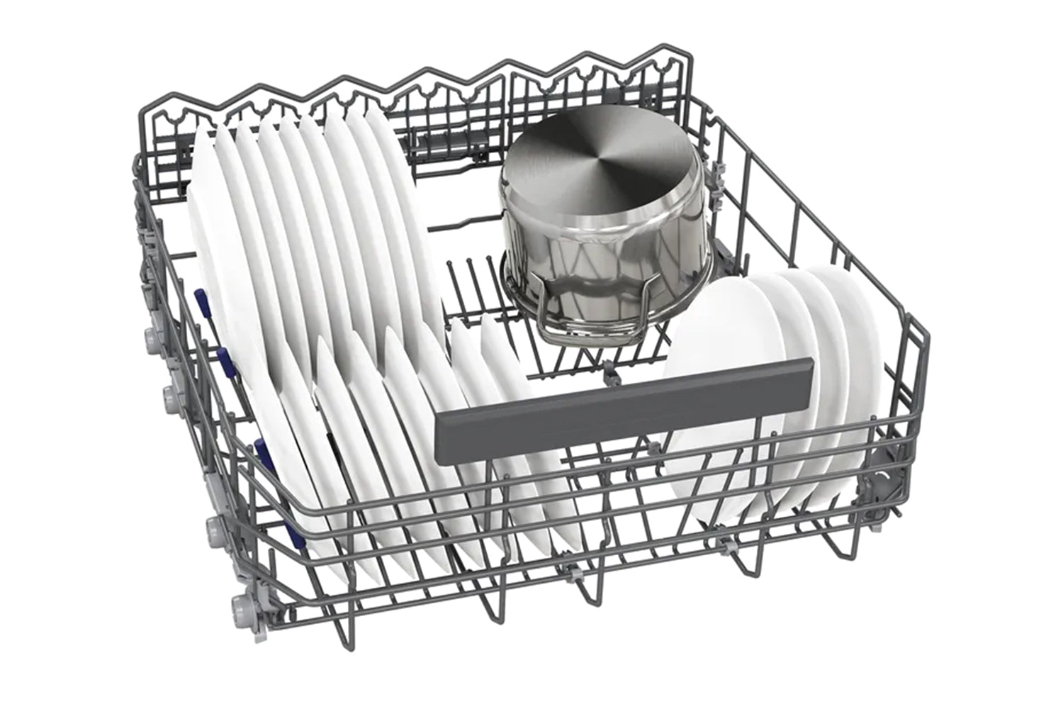 The flexComfort basket system ensures efficient use of space and allows for optimal cleaning results. Its versatile design, with 2 areas in the top rack and a further 8 in the bottom basket, allows you to easily adjust the height of the basket to accommodating larger items such as pots and pan. Anti-slip elements and stemware support hold have also been added for extra convenience.