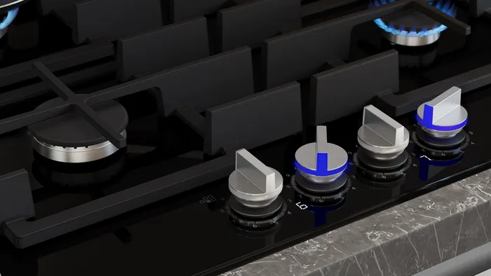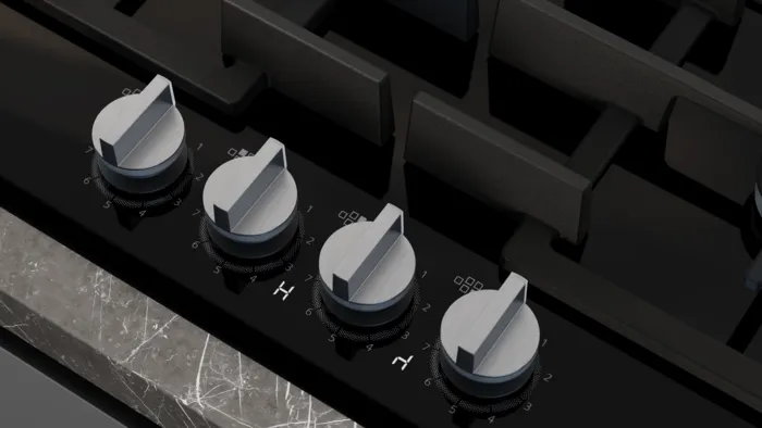 Cleaning made easier than ever with Siemens gas hob's detachable metallic sword dials. Made from durable materials, they provide a firm grip and precise control, while being simple to remove for quick, thorough cleaning.