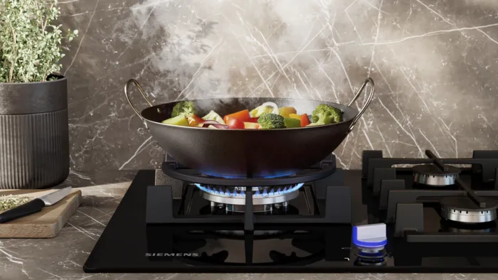 To make your experience even more intuitive, Siemens gas hobs come with illuminated dials that clearly indicate which flame level you’re on. No more second guessing or bending down to check the flame, allowing you to focus on your culinary passion.