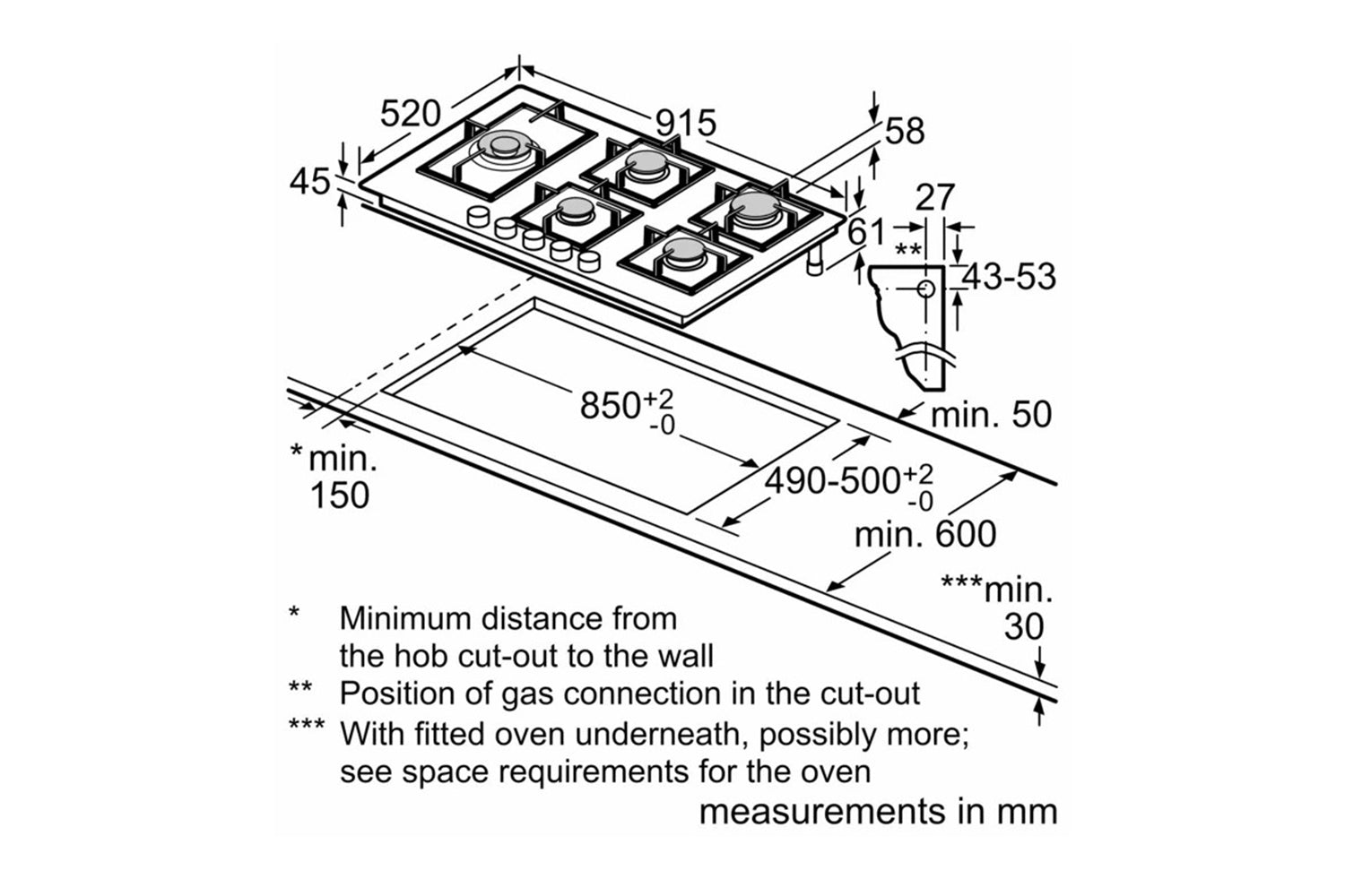 Siemens gas hob's black tempered glass surface is designed with your busy life in mind. It’s incredibly heat-resistant, standing up to the highest temperatures.
