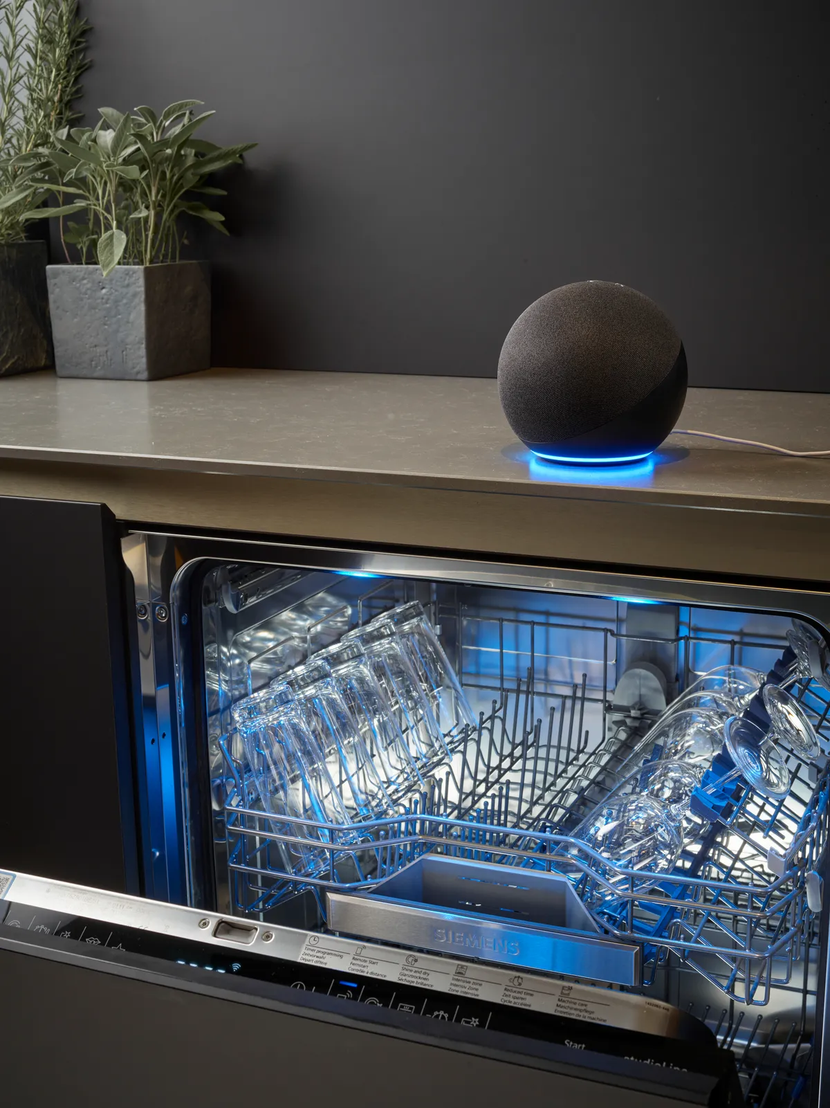 Thanks to partnering with Amazon Alexa and Google Assistant, your dishwasher can be controlled by voice as well. Activate the respective skill/service to establish the connection between the voice assistant and your home appliance via the app. Once connected, you have access to multiple voice commands for your dishwasher.
