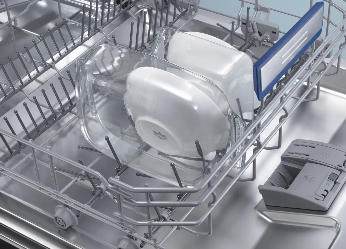 Your dishwasher’s Zeolith compartment contains natural minerals. During the drying phase, these minerals absorb moisture and release hot air. This ensures the most effective drying results, and brings an impressive sheen to all of your items, including difficult-to-dry plastic goods. And the fact they recharge during the next washing cycle means you can rely on high performance drying technology for longer. In addition, the Shine & Dry option will provide that additional shine for extra glossy, squeaky dry tableware.