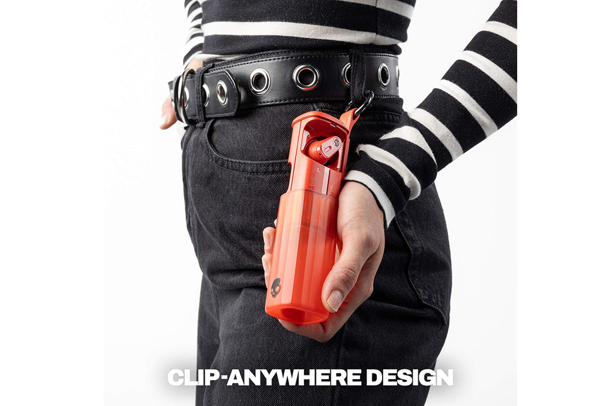 Clip It and Rip It with effortless carry and stand-out style.Skullcandysignature slider case and O-ring design clips to your backpack, key ring or pants so it's always close-at-hand and ready for action with a look that shouts Skullcandy.