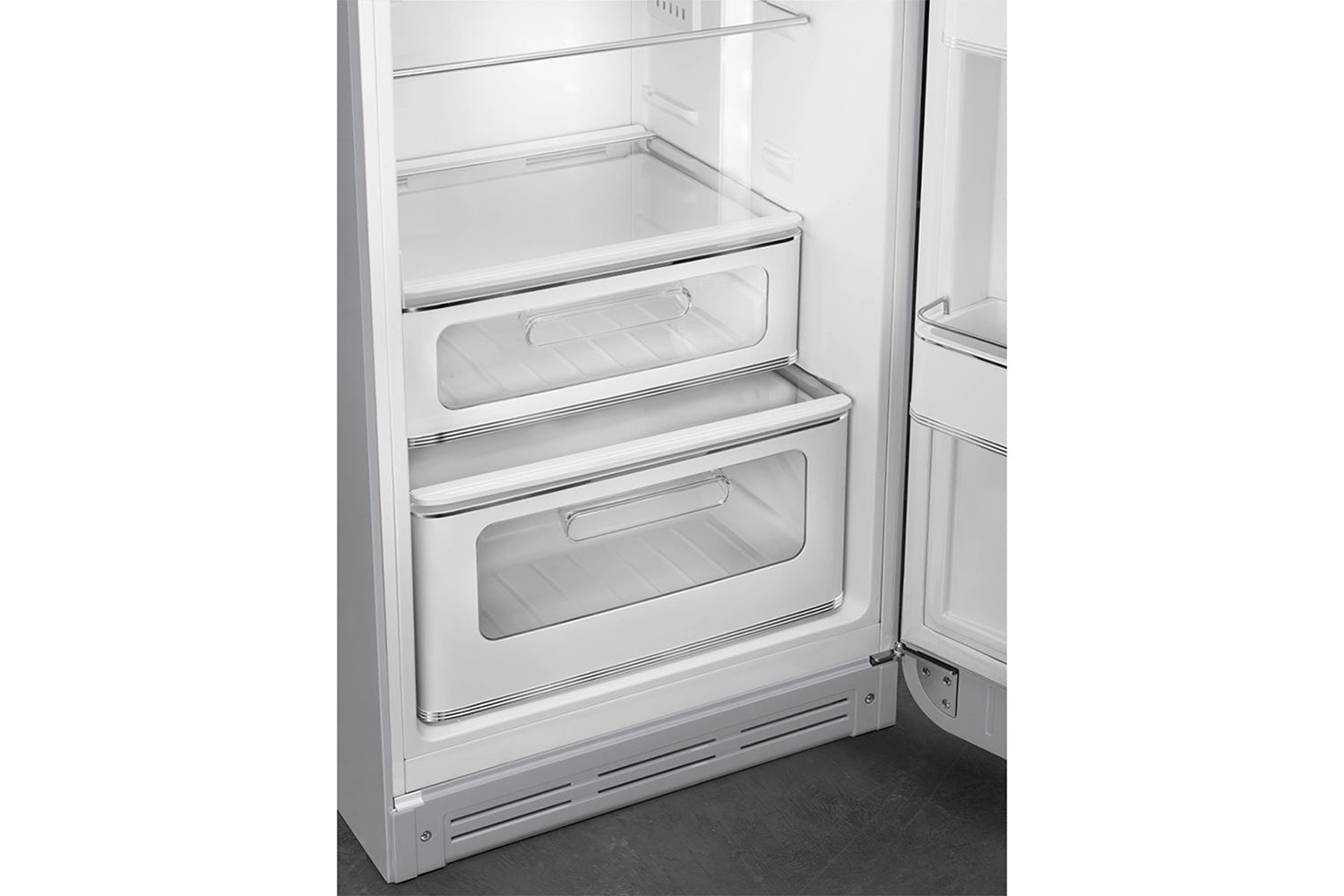 Smeg's FAB fridge is often a distinctive element in the kitchen. Its rounded shapes, chromed details and bright colours are key expressions of style and personality. The FAB30 offers a sizable capacity to suit your storage needs and features a new stylish interior.