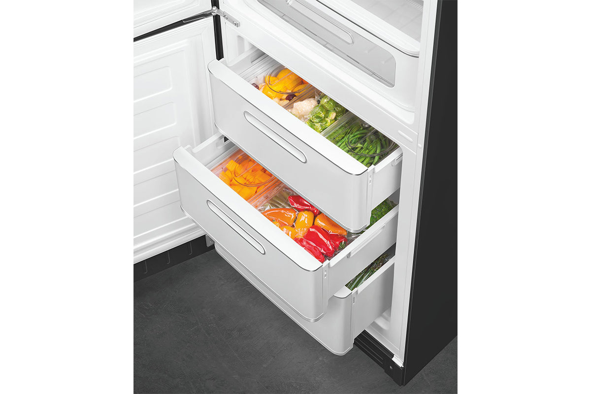 Smeg 50's Style Freestanding Fridge Freezer, Left-Hand Hinge | FAB32LBL6UK | Black